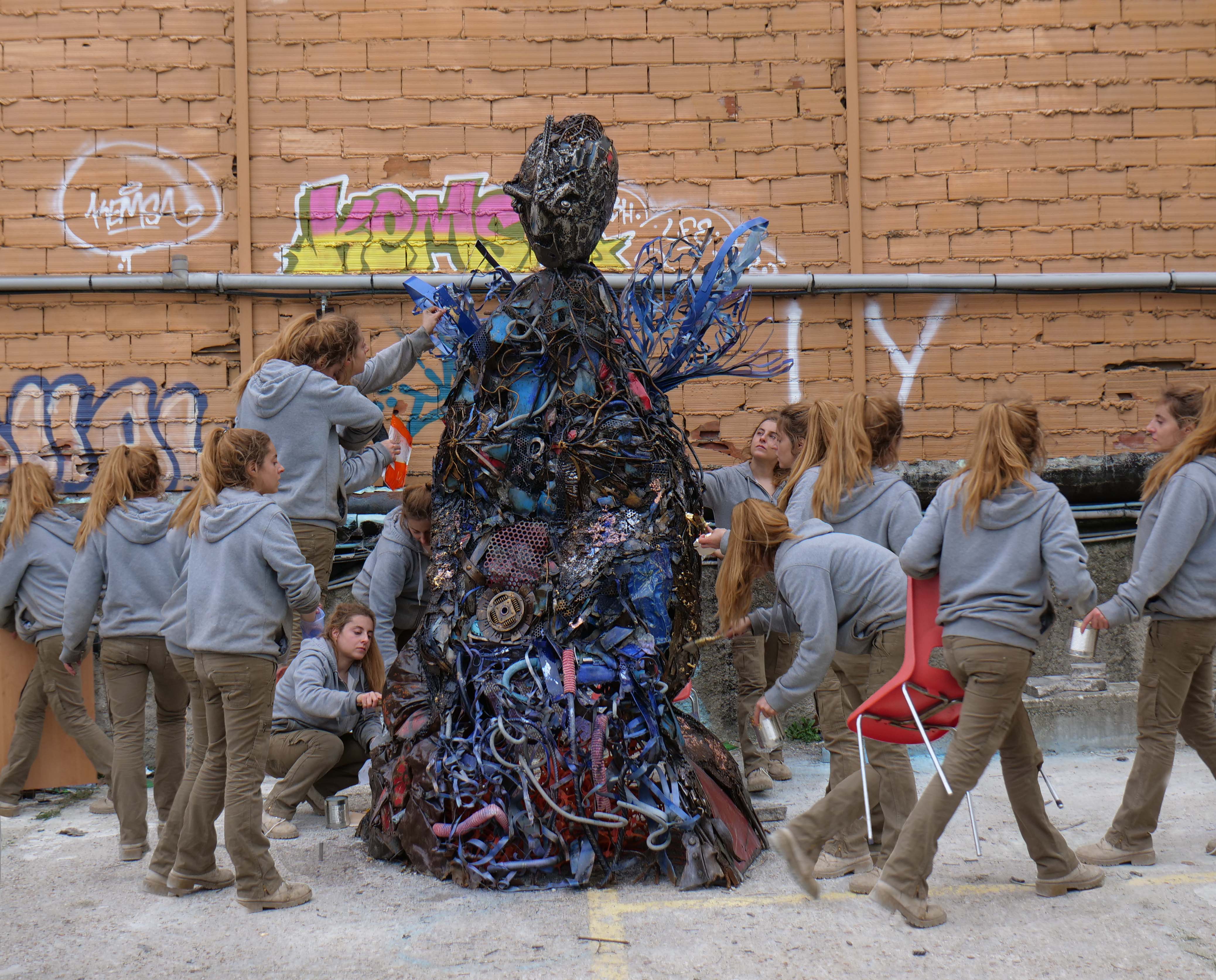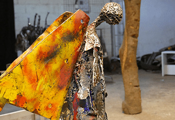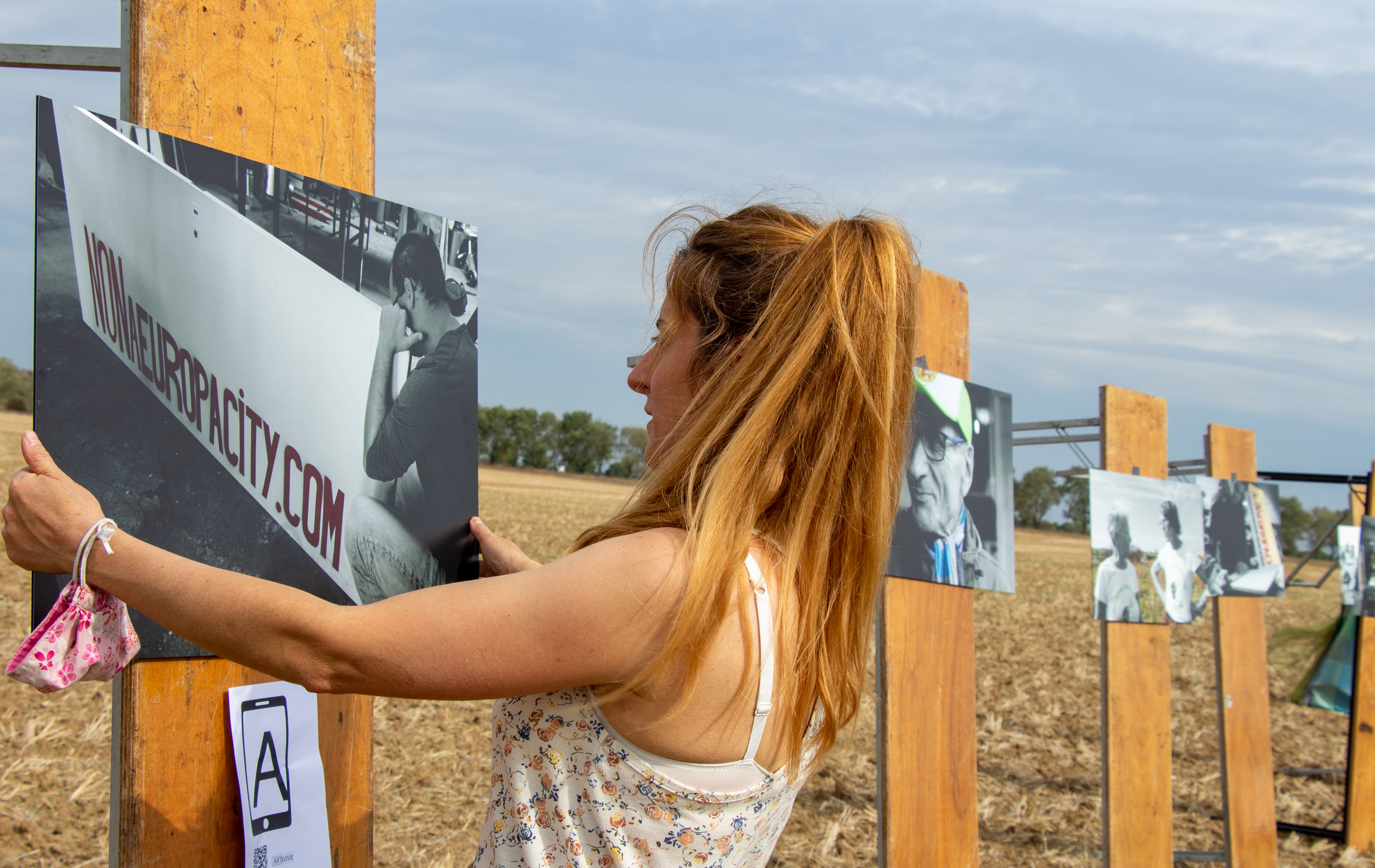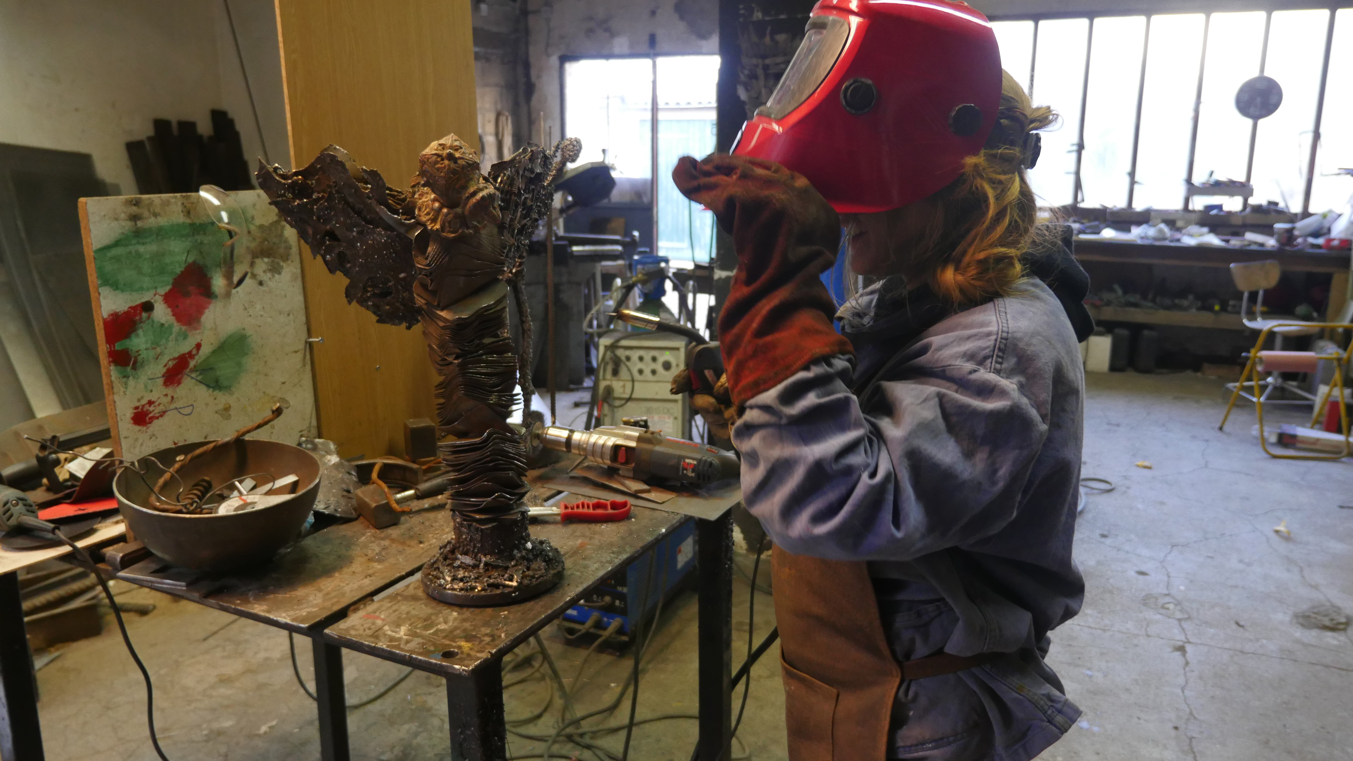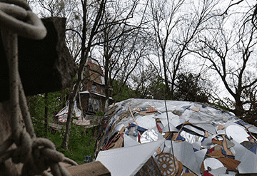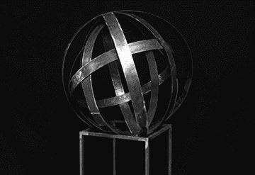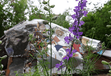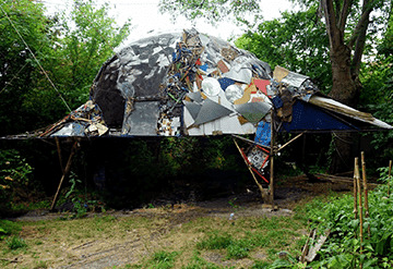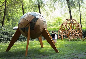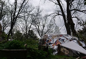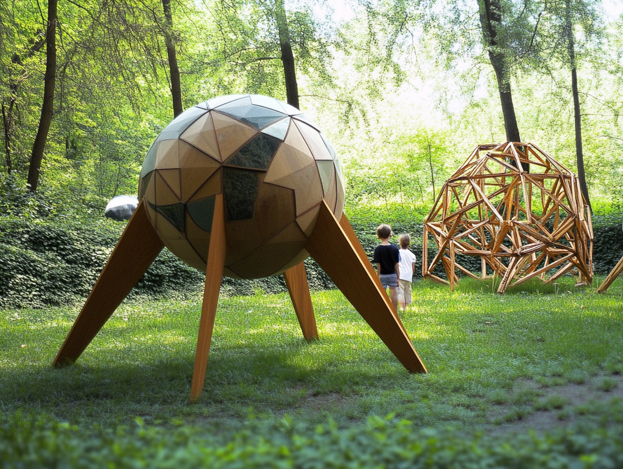 Emerging from the landscape, the monumental sculpture of a flying saucer