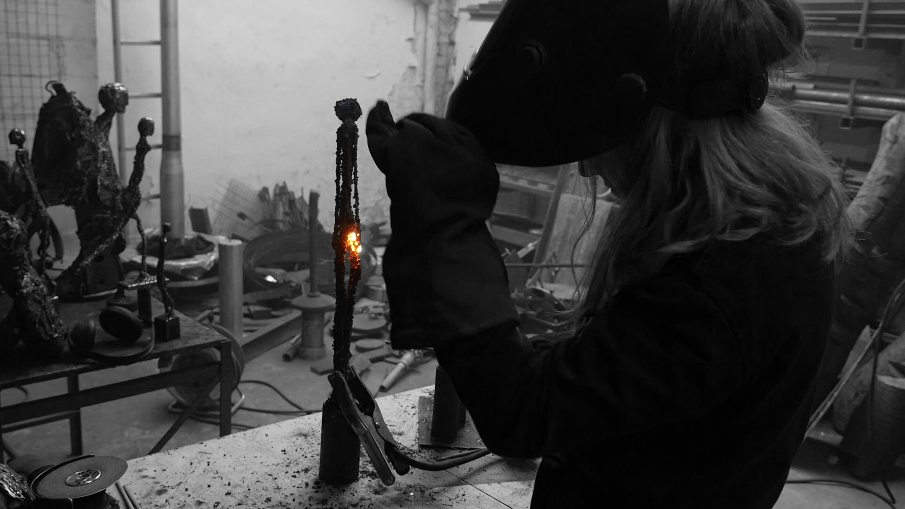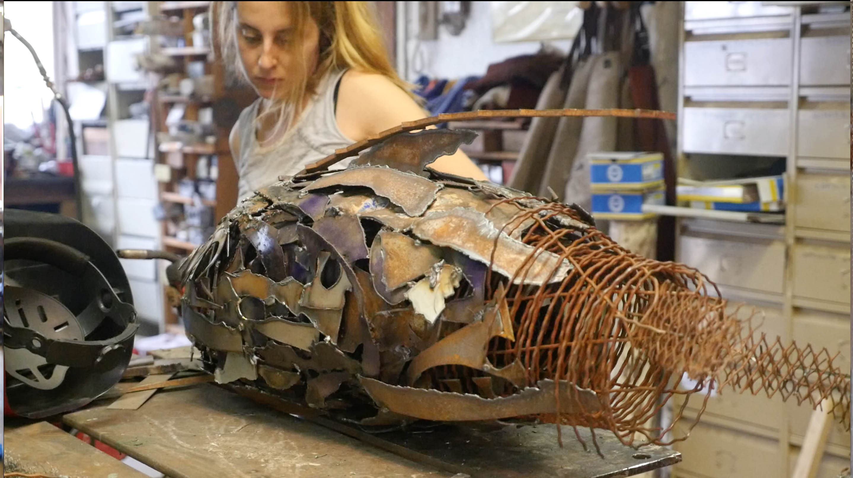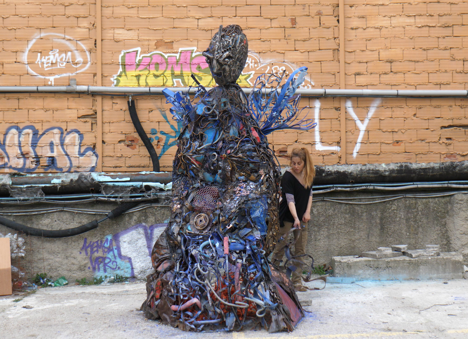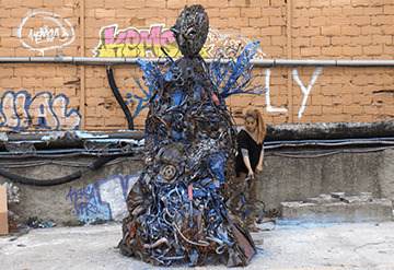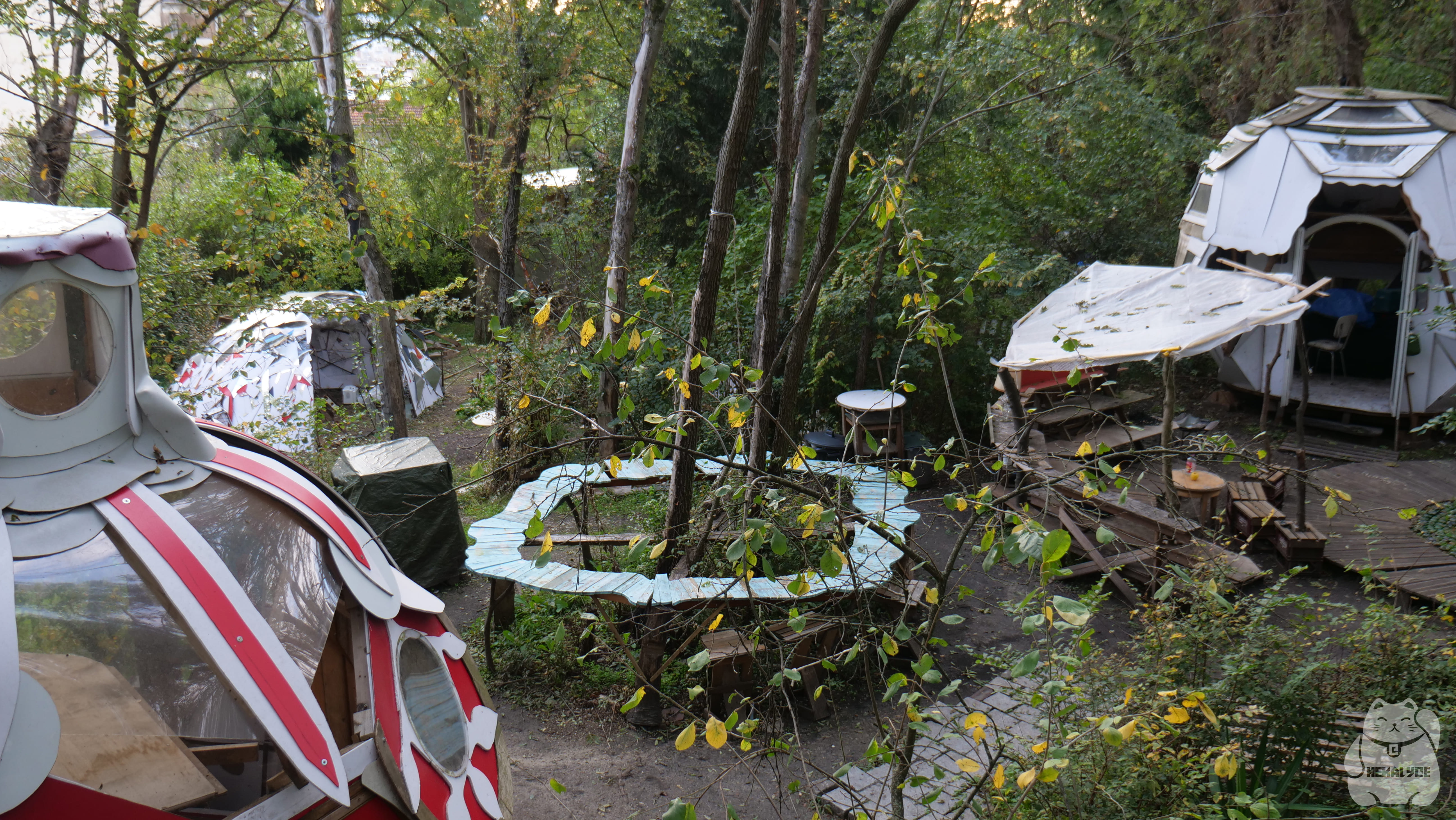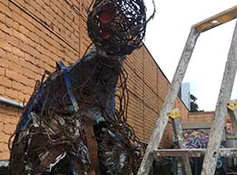 Emerging from the landscape, the monumental sculpture of a flying saucer