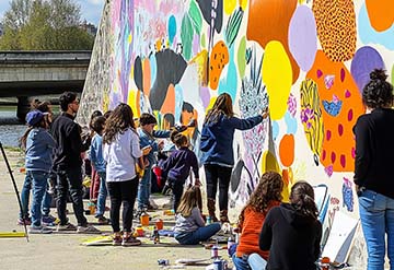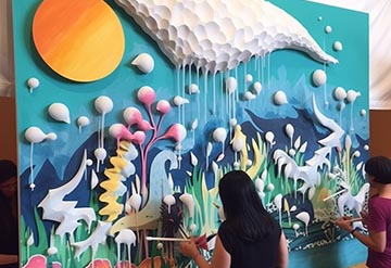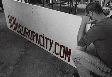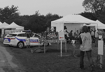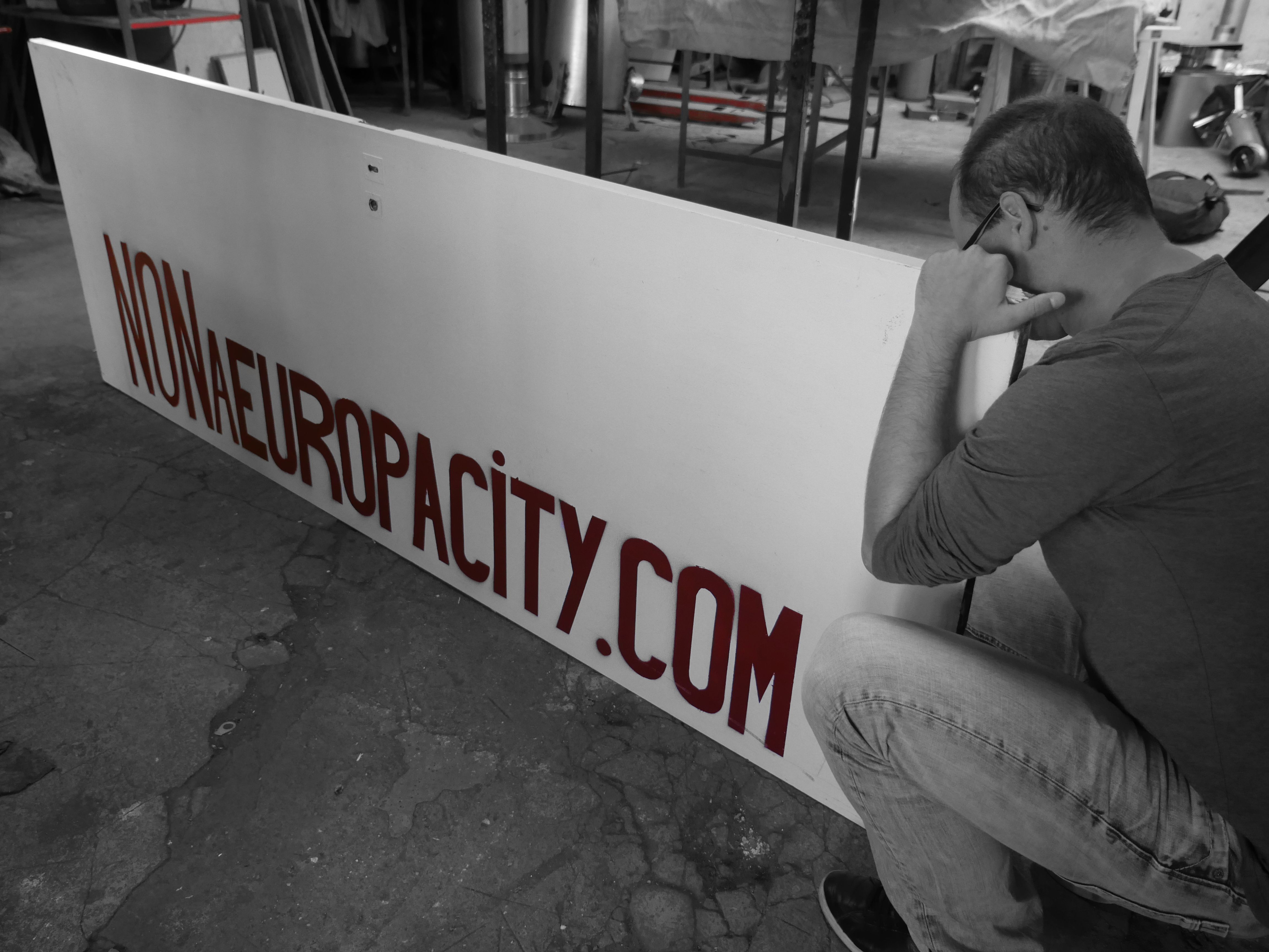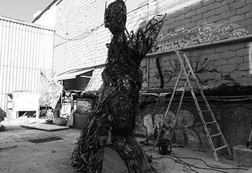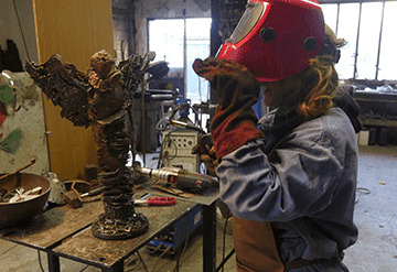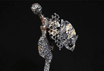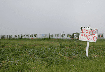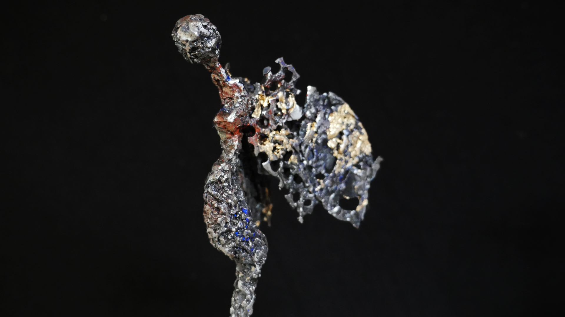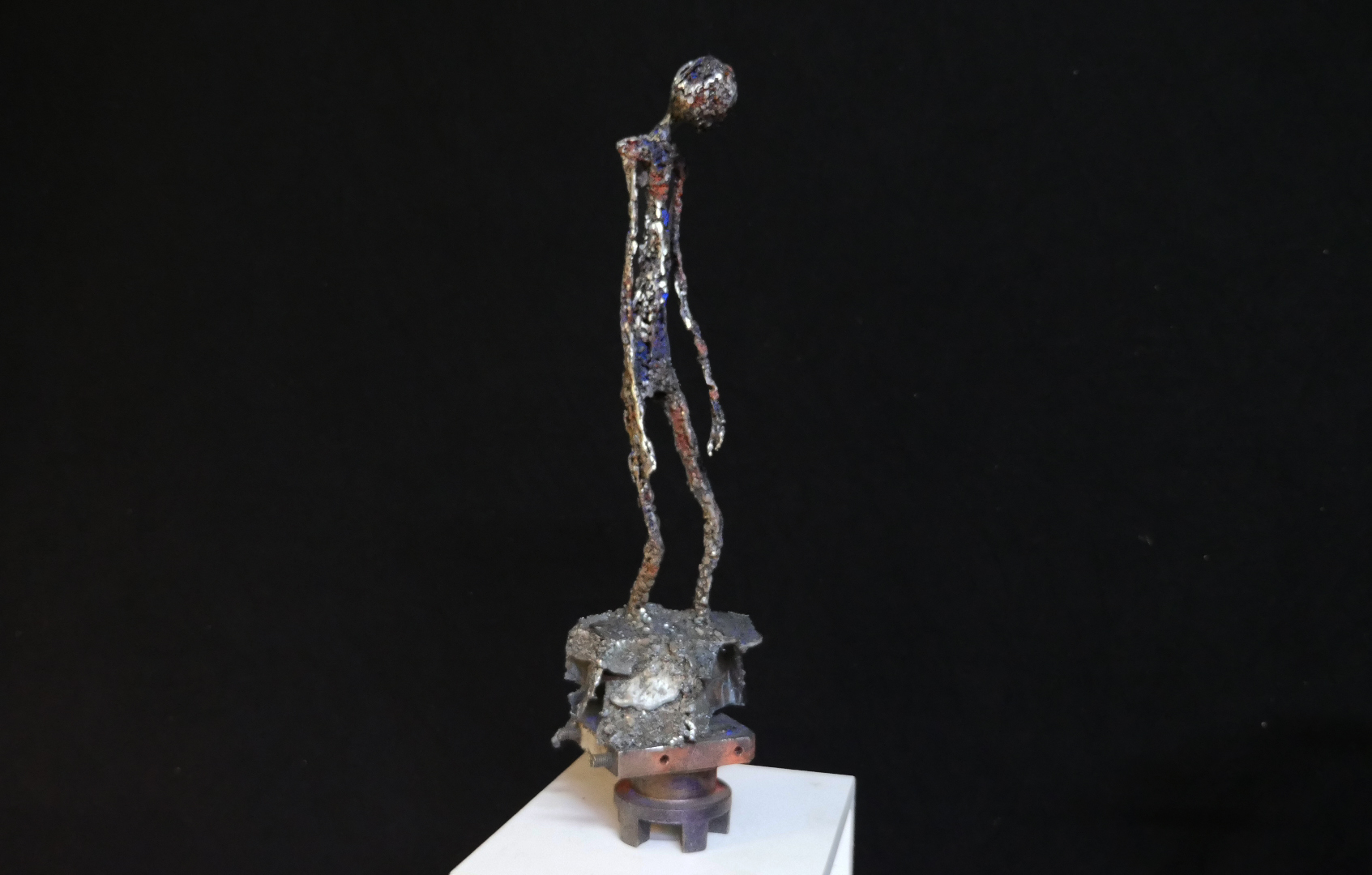 Emerging from the landscape, the monumental sculpture of a flying saucer